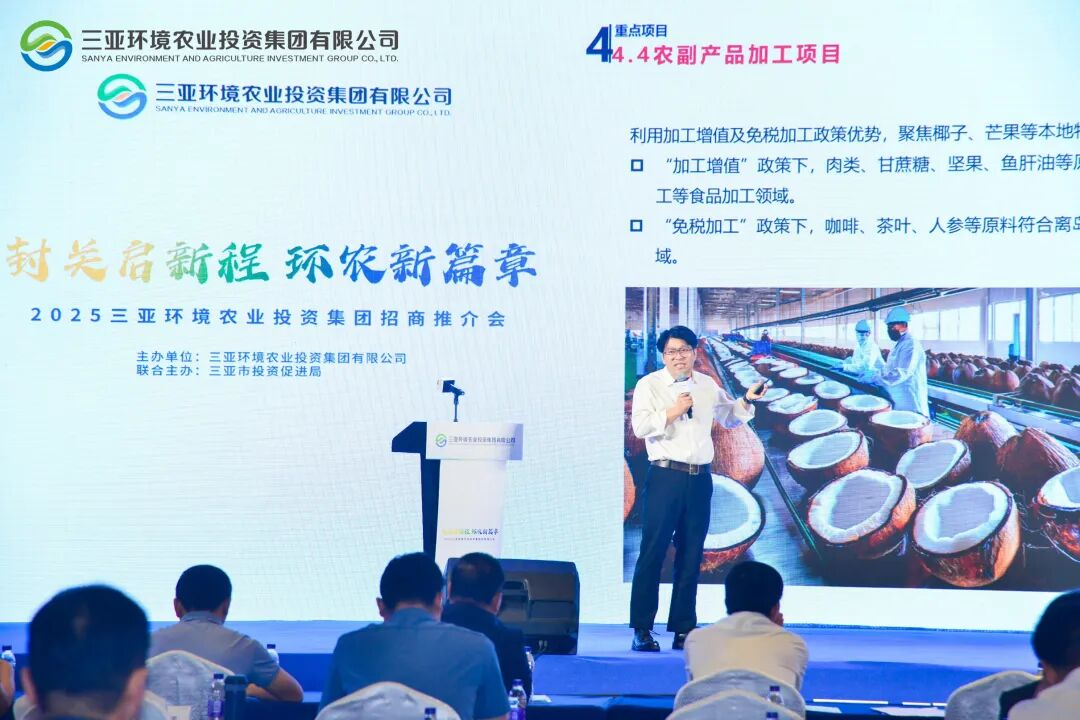 12月23日,由三亞環(huán)農(nóng)集團、三亞市投資促進局聯(lián)合主辦的“封關(guān)啟新程·環(huán)農(nóng)新篇章”2025招商推介會在三亞灣紅樹林國際會展中心舉行。推介會圍繞環(huán)農(nóng)集團六大業(yè)務(wù)板塊,集中推介了11個招商項目,投資總規(guī)模達28.44億元。來自各相關(guān)部門和60多家島內(nèi)外企業(yè)、合作伙伴、金融機構(gòu)的代表同三亞環(huán)農(nóng)集團共話農(nóng)商與環(huán)境板塊新成果、共探自貿(mào)港新政策、共尋合作新機遇。
